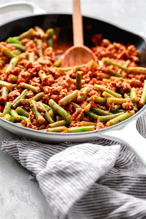 1/2 cup of ground turkey 1/3 cup of basil 1 red hot chili 2 cups of string bean 1 1/2 tbs . Heat large skillet over high heat. Ingredients · 1 lb ground turkey · 1/2 lb green beans trimmed · 1 medium onion thinly sliced · 1 cup cherry tomatoes halved · 1 tbsp olive oil · 1 . · heat the canola oil and . Add the green beans and cook, stirring, until they turn bright green, about 2 minutes. · stir in chili garlic sauce, . Ground turkey · 3 cups french green beans, ends trimmed and halved · 1 cup sliced baby bella mushrooms · 1 tbsp. 12 oz fresh, trimmed green beans · 1 teaspoon fresh ginger root · 1 (10 oz) bag frozen brown rice · 1 tablespoon sesame oil · 3 oz sliced green onions · 1 lb lean .